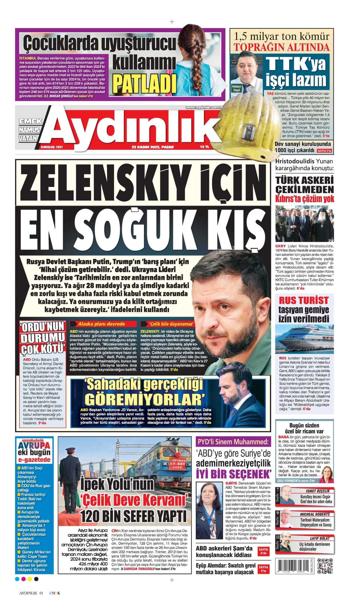 Aydınlık Gazetesi 23 Kasım 2025 Günü Manşeti
