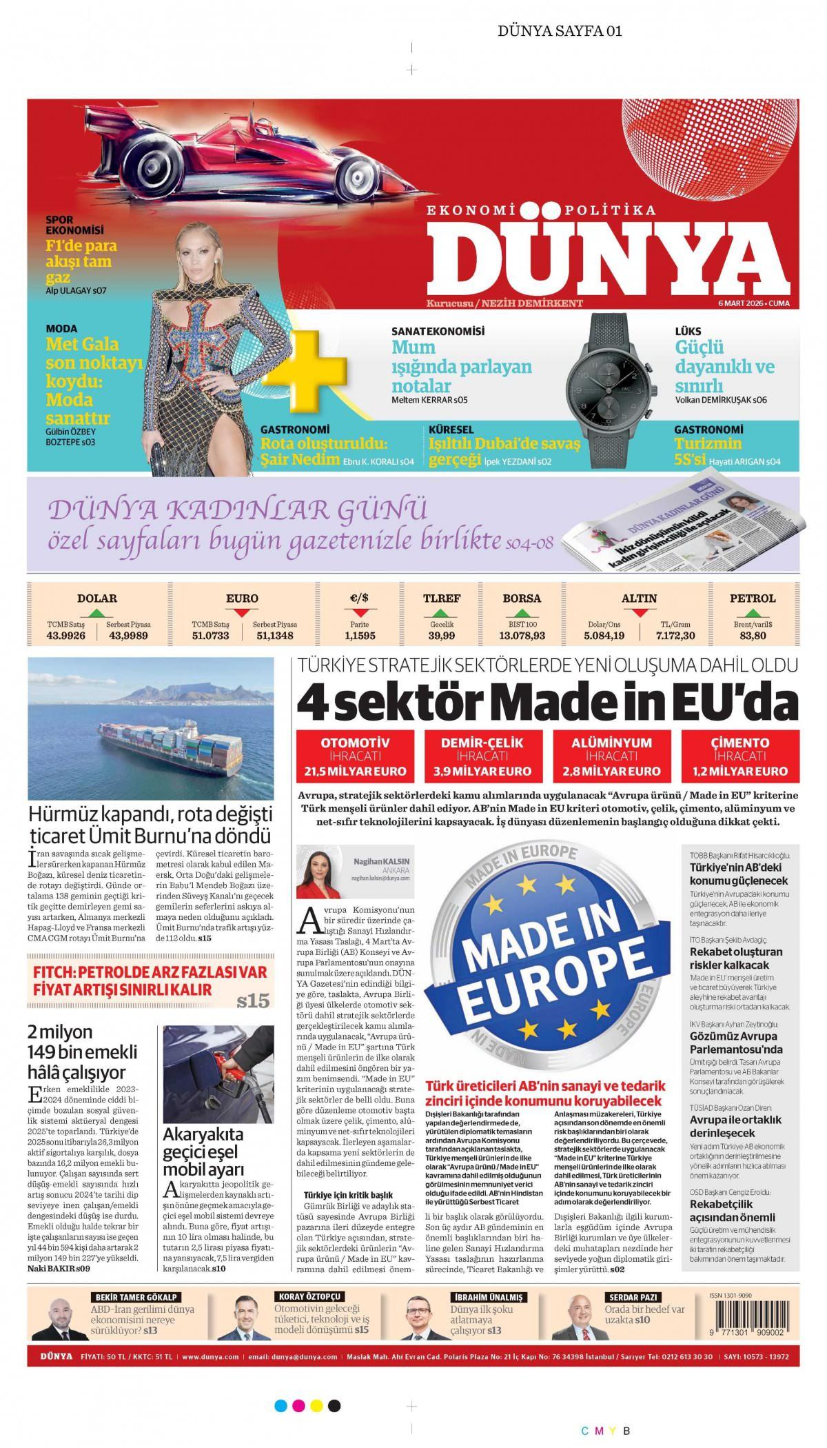 Dünya Gazetesi 7 Mart 2026 Günü Manşeti