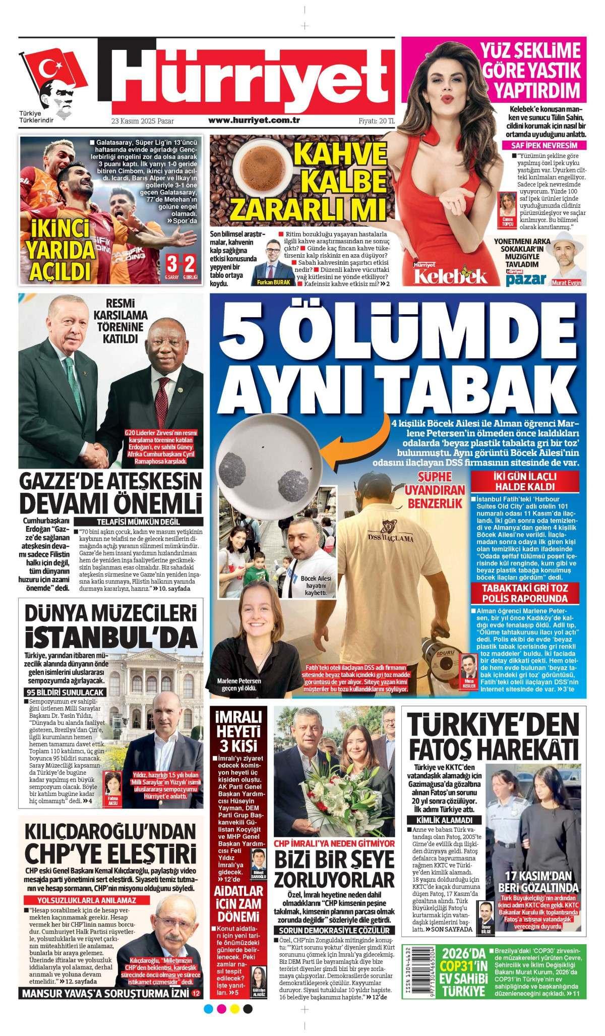 Hürriyet Gazetesi 23 Kasım 2025 Günü Manşeti
