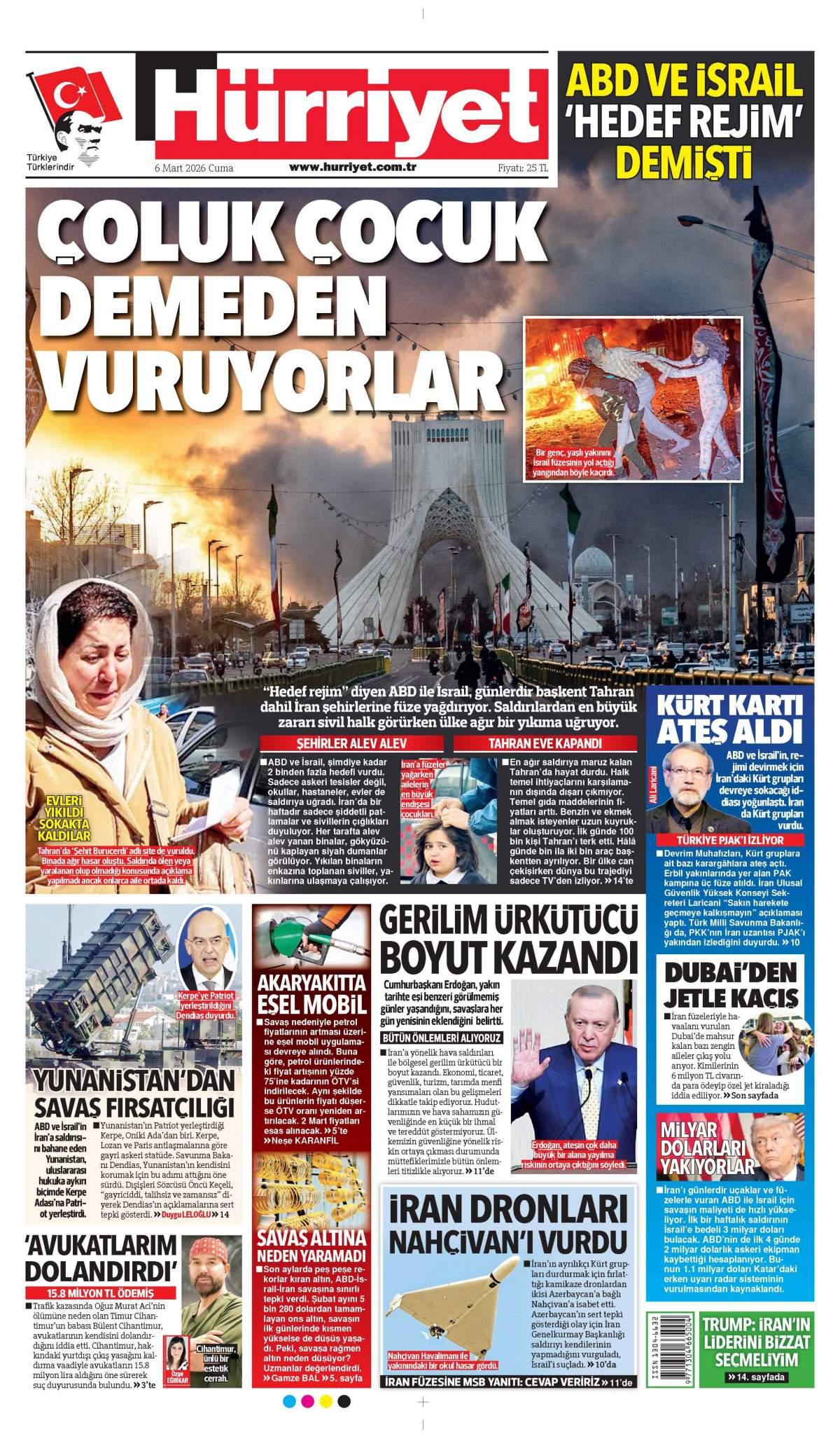 Hürriyet Gazetesi 7 Mart 2026 Günü Manşeti