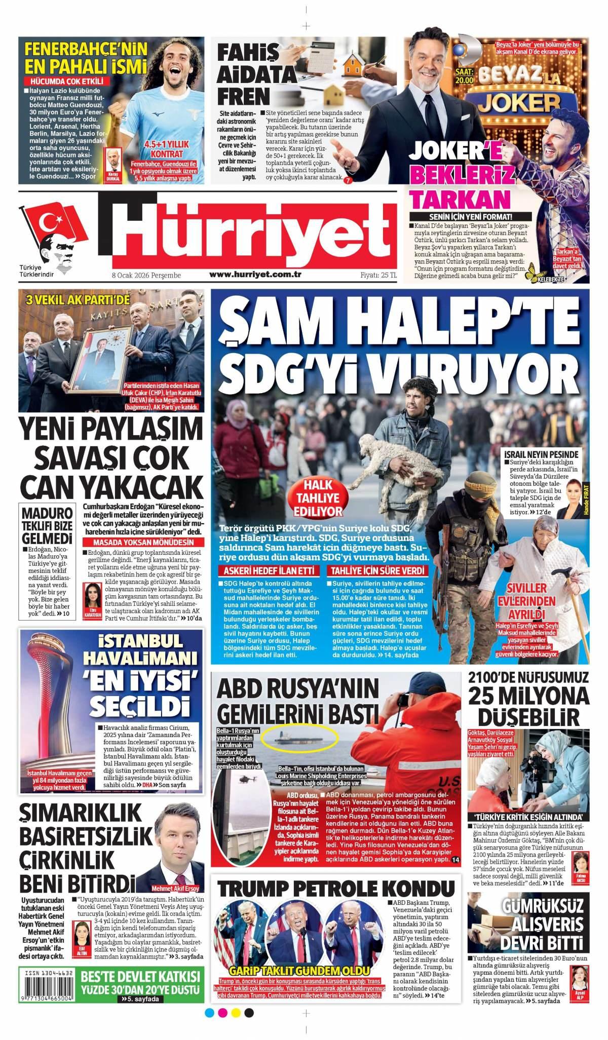 Hürriyet Gazetesi 9 Ocak 2026 Günü Manşeti