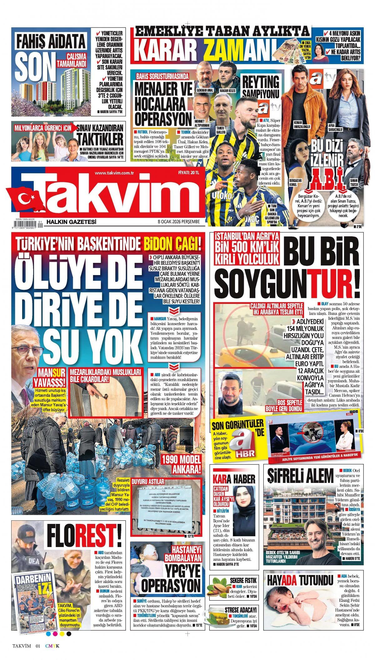 Takvim Gazetesi 9 Ocak 2026 Günü Manşeti