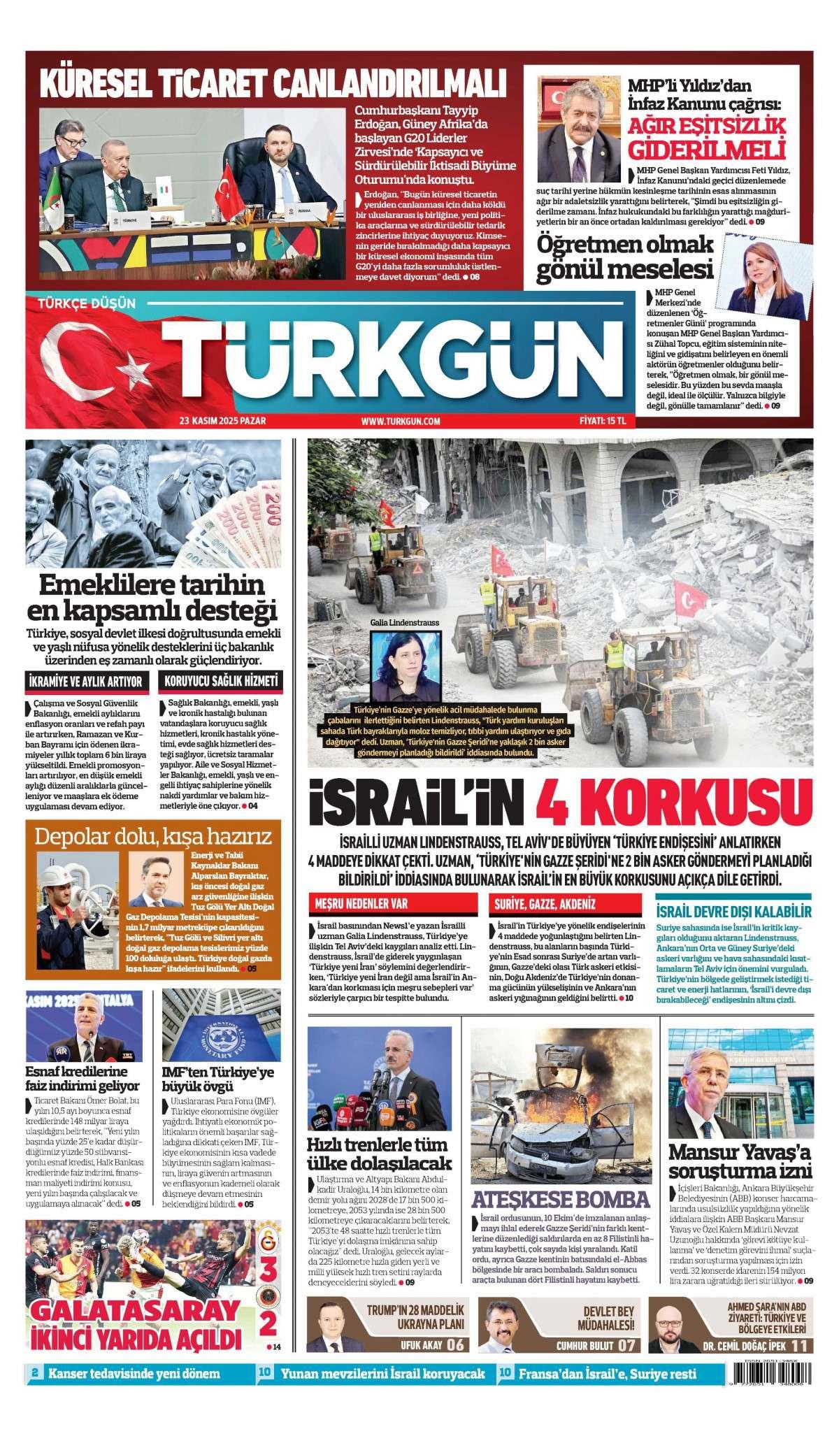 Türkgün Gazetesi 23 Kasım 2025 Günü Manşeti