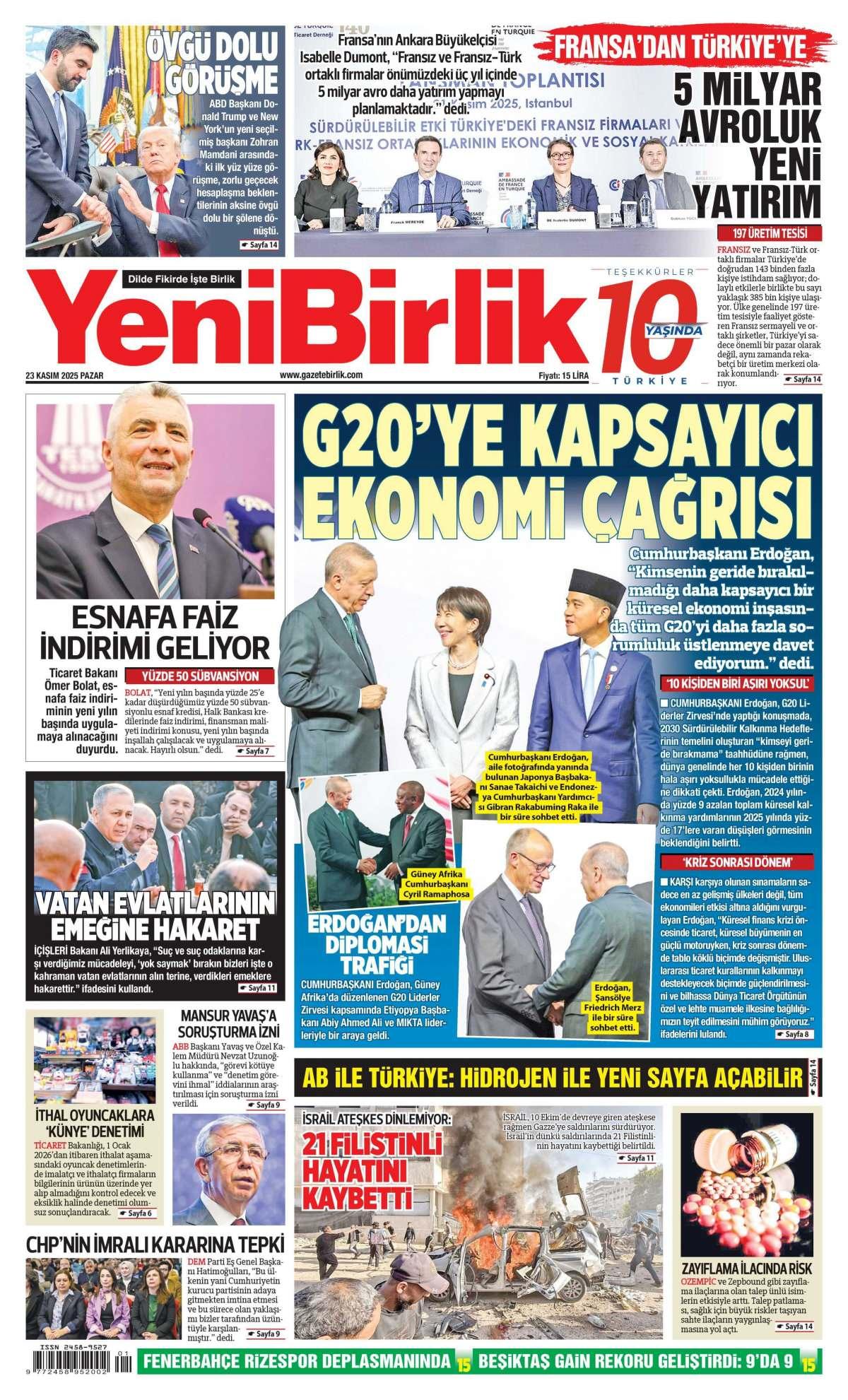 Yeni Birlik Gazetesi 23 Kasım 2025 Günü Manşeti